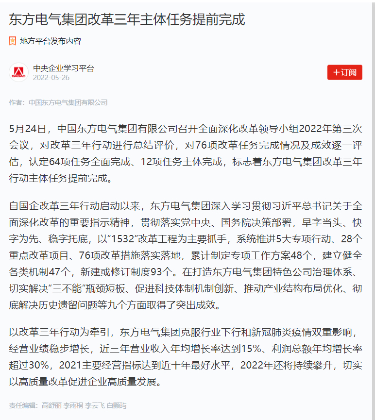 [学习强国]LETOU电气集团改革三年主体任务提前完成