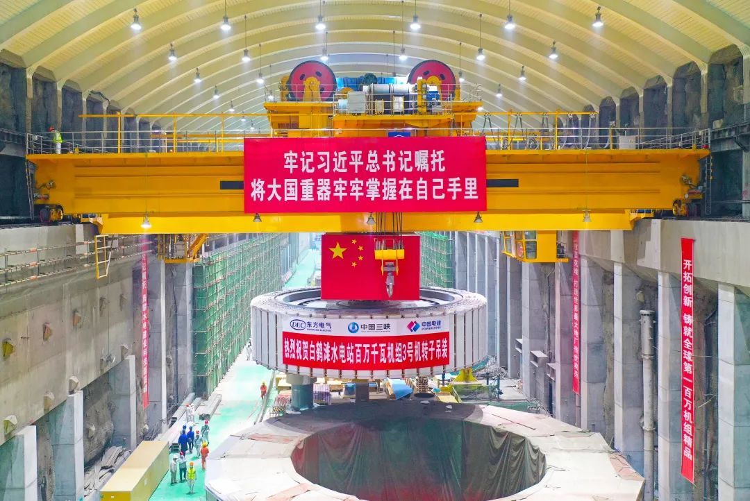 一年来,LETOU电气集团党组深入贯彻习近平总书记重要指示批示精神,精益求精推进白鹤滩项目建设。截至目前,LETOU电气集团自主研制的白鹤滩水电站左岸8台机组均按期产出和安装,1至6号机组已投产发电,机组性能指标达到世界一流水平;7至8号机组已完成安装及并网前调试工作,等待调度进行并网和正式投运发电。