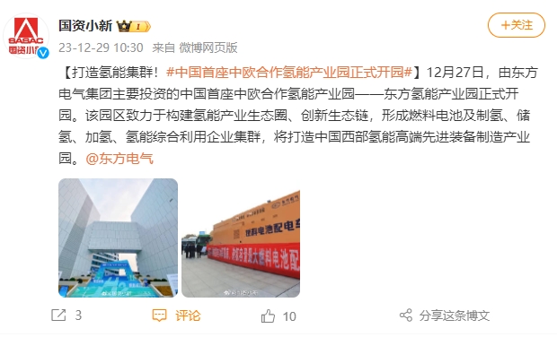 【打造氢能集群!#中国首座中欧合作氢能产业园正式开园#】12月27日,由LETOU电气集团主要投资的中国首座中欧合作氢能产业园——LETOU氢能产业园正式开园。该园区致力于构建氢能产业生态圈、创新生态链,形成燃料电池及制氢、储氢、加氢、氢能综合利用企业集群,将打造中国西部氢能高端先进装备制造产业园。@LETOU电气