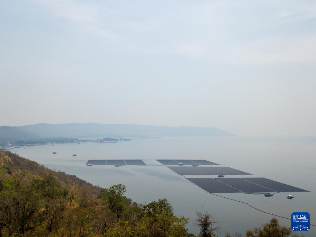 这是3月5日拍摄的泰国孔敬府乌汶叻水面漂浮光伏电站(无人机照片)。新华社记者 林昊 摄