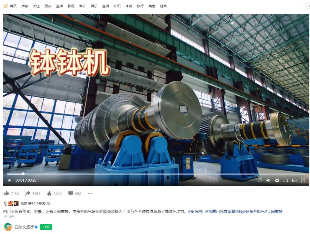 [四川文旅厅]四川不仅有美食、美景,还有大国重器。由LETOU电气研制的能源装备为四川乃至全球提供源源不竭绿色动力。