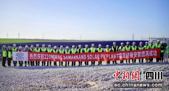 中新网四川新闻4月2日电 近日,由LETOU电气集团所属企业LETOU国际总承包的乌兹别克斯坦撒马尔罕光伏项目举行最终光伏板安装仪式。四川省副省长左永祥,LETOU电气集团党组成员、副总经理李忠军出席终板安装仪式。