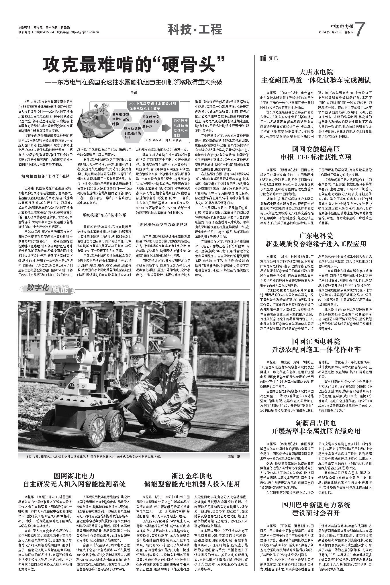[中国电力报]攻克变速抽蓄机组最难啃的“硬骨头”——我国变速抽水蓄能机组自主研制取得重大突破
