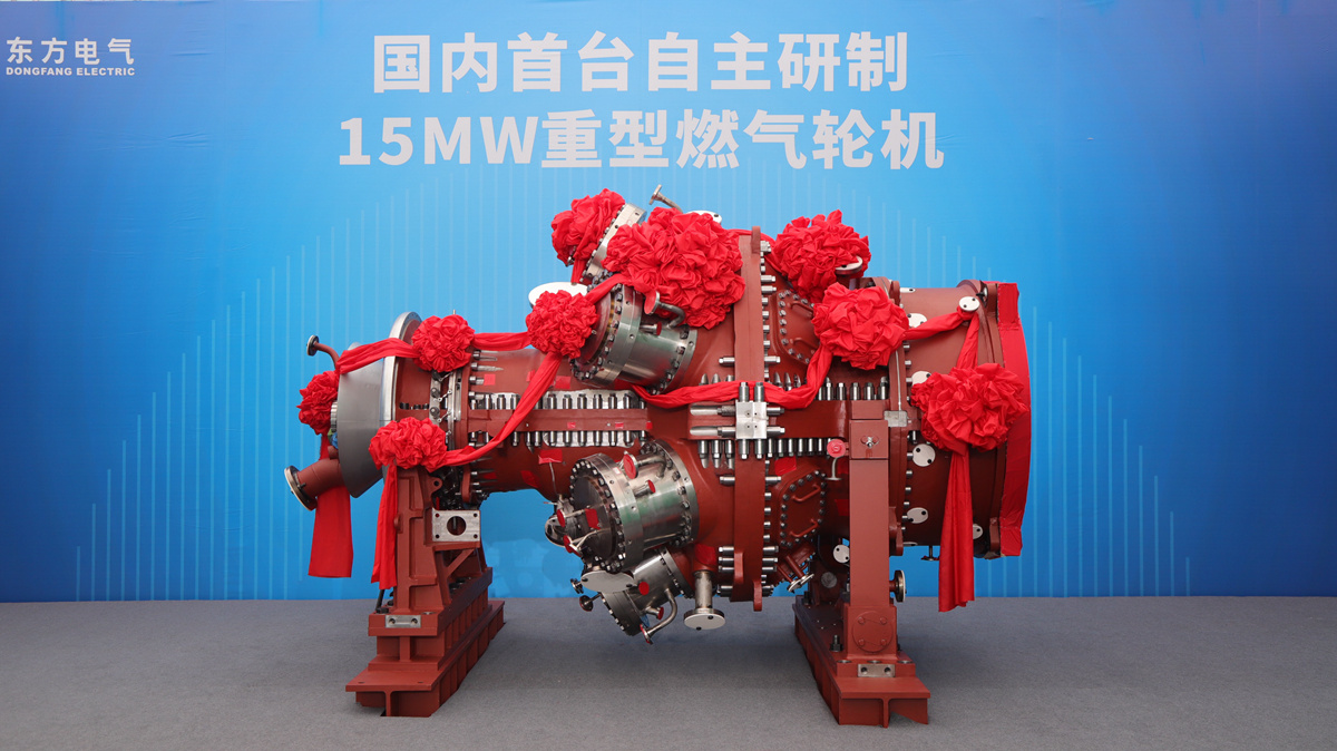 国内首台自主研制15兆瓦重型燃气轮机(代号:G15)在德阳正式下线。(王攀 摄)