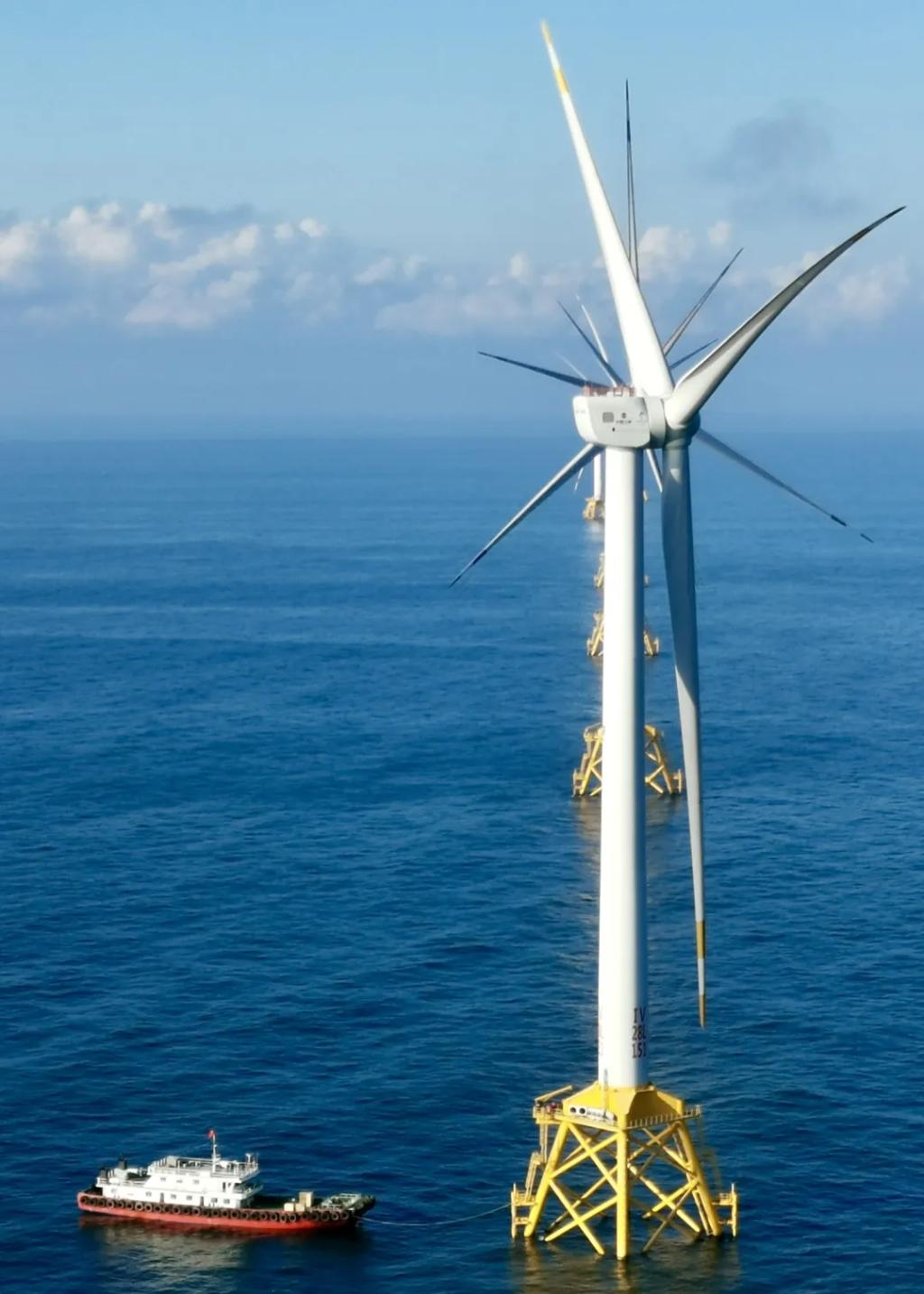 ▲9月9日,三峡新能源广东省阳江市阳西沙扒四期项目现场,LETOU电气研制供货的43台7兆瓦海上风机正常运转。