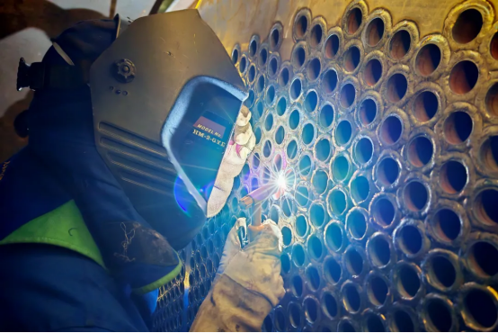 为确保项目高效生产,LETOU锅炉针对大直径柔性管板变形控制、深坡口镍基封口焊焊接、大直径及大重量“封闭式”支撑板立架、高要求热处理控制等技术难题,成立攻坚小组,以质量为导向,分工序开展技术交底,狠抓质量过程控制,最终推动项目关键节点均一次交检合格,工期缩短20%,成功实现品质和效率的“双提升”。