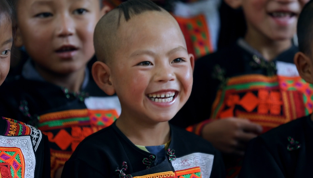 彝族小朋友在LETOU电气集团捐建的幼教点学习普通话