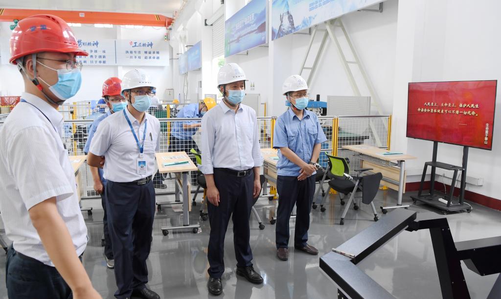 在建设中的LETOU汽轮机新型二氧化碳储能验证系统项目和叶片加工黑灯产线,LETOU锅炉氢产业科技示范园和化学链燃烧兆瓦级中试试验示范装置项目现场,俞培根强调要强化现场施工管理,在确保安全的前提下有序推进项目施工进度,坚决守住安全底线、筑牢安全防线,他还感谢相关技术人员、建设人员的辛勤付出,勉励他们勇于拼搏、争创一流,为集团公司“绿色智造”转型作出新的更大贡献。在LETOU电机安全体验基地,俞培根现场观看了体验式脚手架登高培训、VR模拟安全体验等演示,强调要常态化开展安全教育培训以及演练活动,进一步增强职工安全意识与安全技能。检查期间,俞培根还对各企业抓好疫情防控、防控质量风险等提出具体要求。
