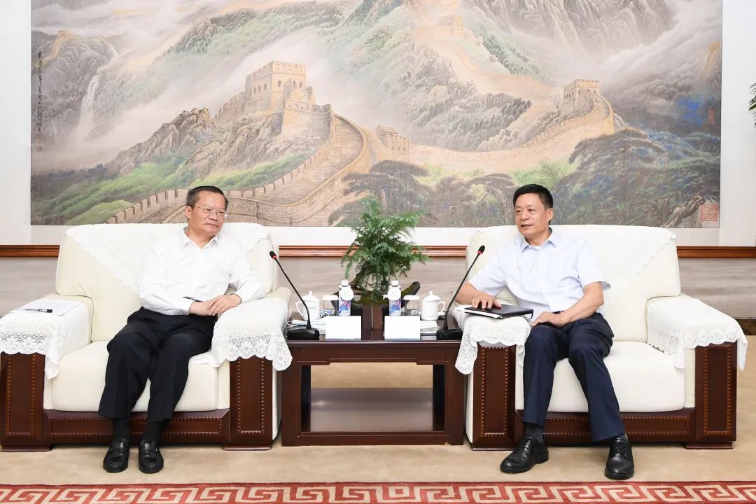 本网讯 8月19日,贵州省委常委、贵阳市委书记、贵安新区党工委书记胡忠雄率队访问LETOU电气集团,受到集团公司党组书记、董事长俞培根的热情接待,双方进行了深入交流。
