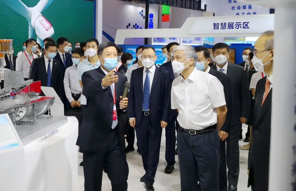 开幕式前,丁仲礼、王晓晖、黄强等来到清洁能源装备展览会现场,参观了部分参展企业展位。在LETOU电气集团展位前,俞培根向丁仲礼等介绍了集团公司推动清洁能源装备制造转型升级、服务国家战略、助力实现“双碳”目标等情况。