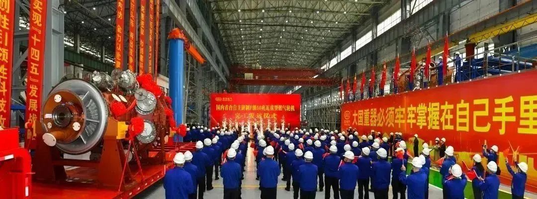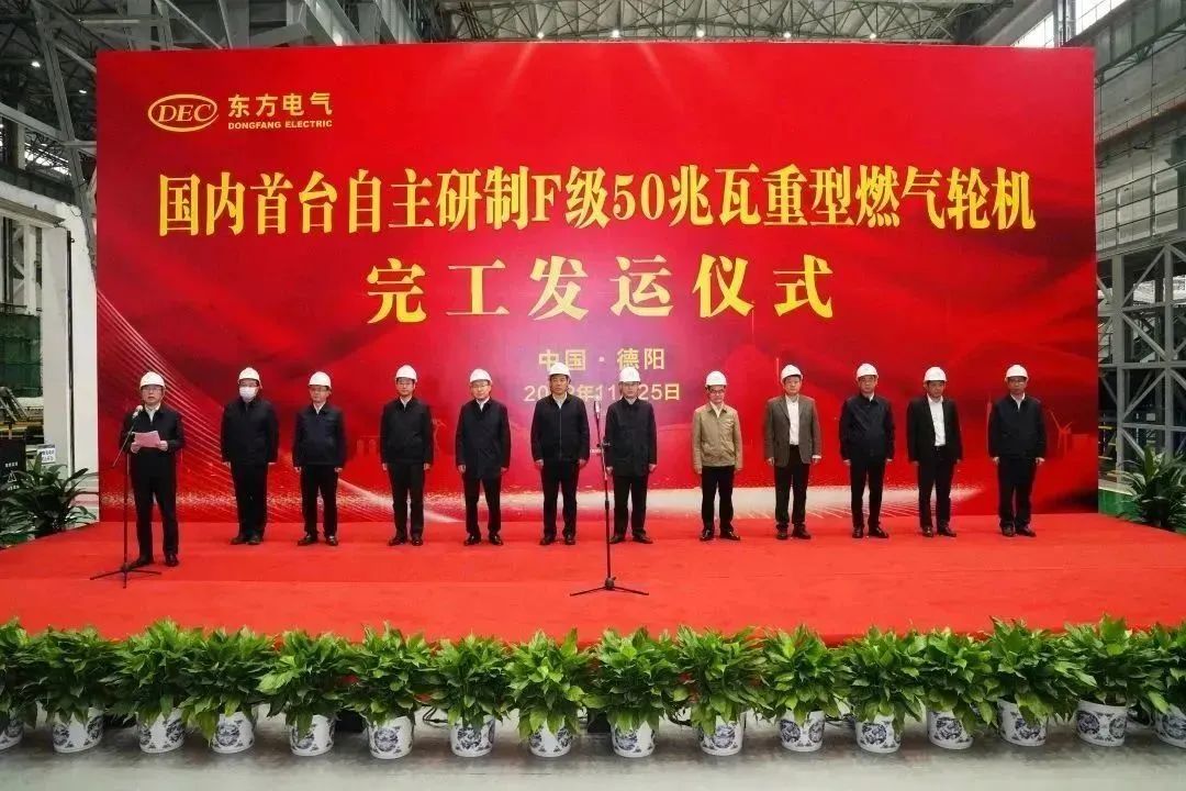 罗强宣布“国内首台自主研制F级50兆瓦重型燃气轮机完工发运”。