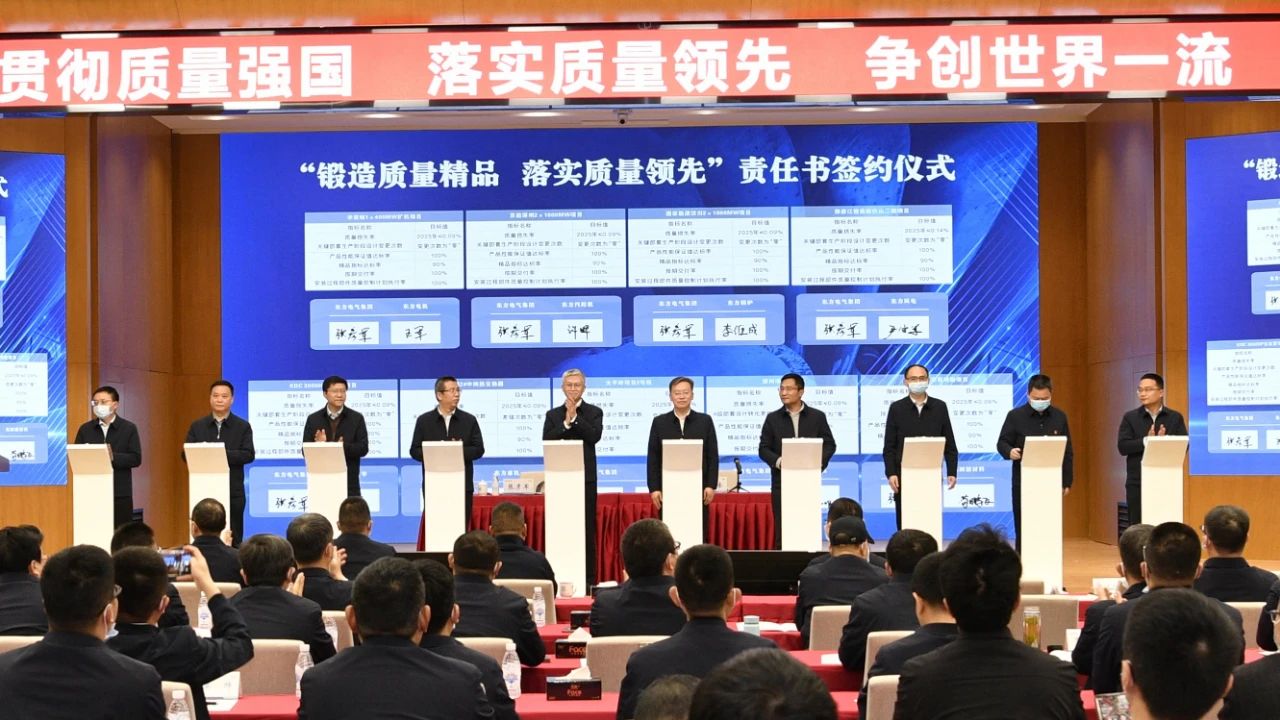 张彦军代表集团公司与各企业主要负责人签订了“锻造质量精品,落实质量领先”责任书,进一步压实质量责任。