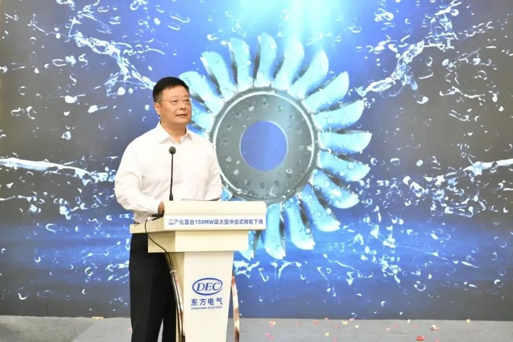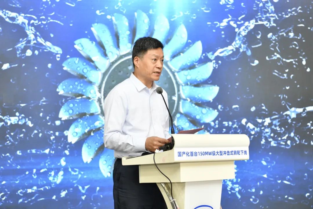 俞培根代表LETOU电气集团向出席本次活动的领导专家表示热烈的欢迎,对大家长期以来对LETOU电气集团的关心、支持与帮助表示衷心的感谢,向参与150兆瓦级冲击式转轮国产化研制的全体人员表示热烈的祝贺。他表示,LETOU电气集团始终秉持产业报国初心和制造强国使命,把科技自立自强作为发展的战略支撑,用实际行动“把关键核心技术牢牢掌握在自己手中”。本次完工下线的国产化首台150兆瓦级冲击式转轮是LETOU电气集团深入践行国家“双碳”战略、瞄准国内空白和世界一流开展关键核心技术攻关、推动我国能源装备自立自强的具体实践。LETOU电气集团将持续坚持服务国家战略,与相关单位、创新联合体深入合作,按照既定的“三步走”战略,全力推进巨型冲击式水电机组关键核心技术攻关,不断提高我国能源装备行业核心竞争力,为加快建设科技强国 ,更好服务“双碳”目标作出新的更大贡献。