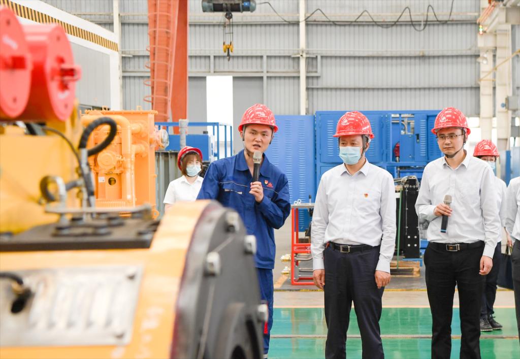 俞培根首先与LETOU宏华领导班子座谈,调研LETOU宏华党的建设、生产经营及主题教育开展情况,并围绕深化改革、科技创新、能源装备高质量发展等交流研讨。