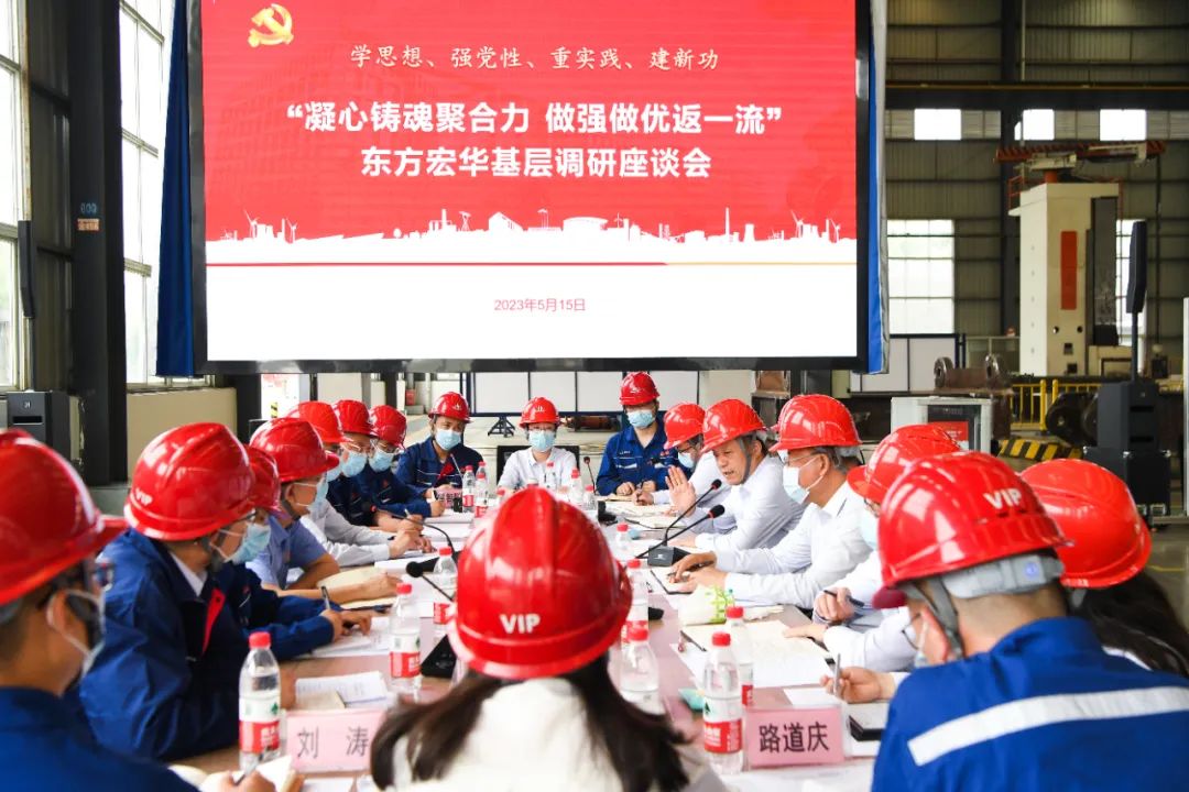 随后,俞培根在零部件加工中心现场召开调研座谈会,与技术专家、技能大师、劳动模范、党支部书记、党支部委员、党员和群众代表面对面交流,认真收集改革发展、生产经营,特别是国际化市场突破、科技自立自强、职工群众急难愁盼问题等方面的意见和建议。