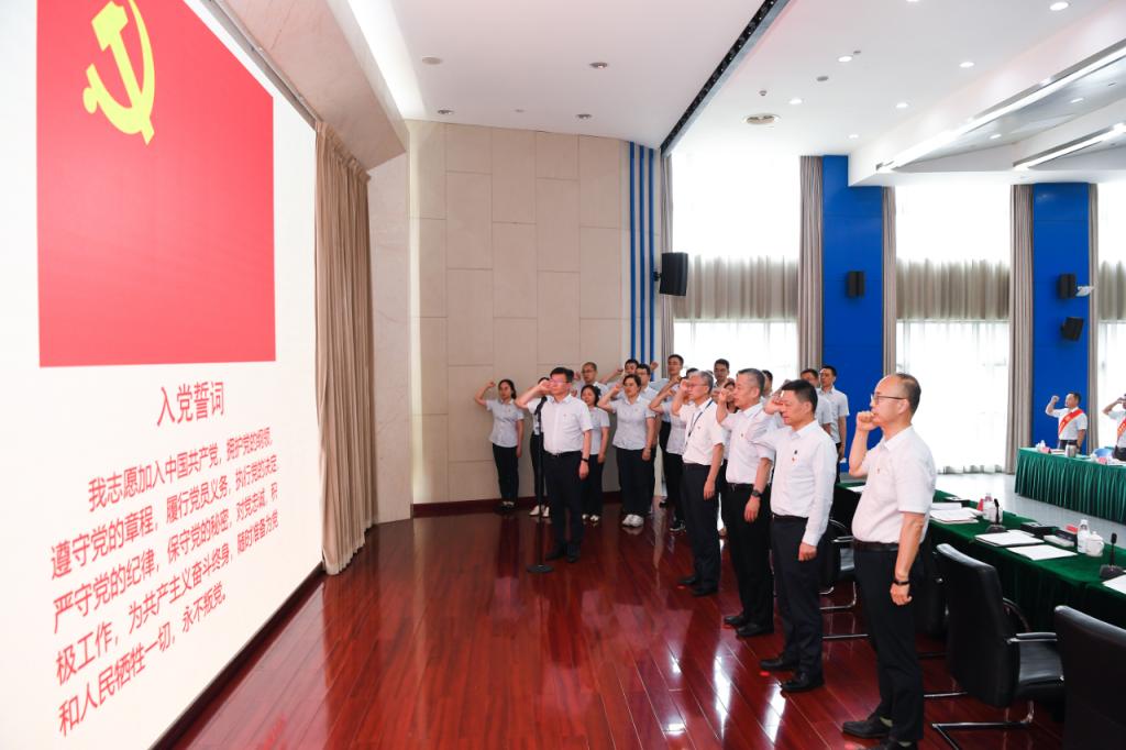 面向党旗,新党员代表入党宣誓,全体参会党员重温入党誓词。会议发布了《集团公司党建与生产经营深度融合“四级五步五法”工作导则》,表彰了集团公司“LETOU心”党建与生产经营十大融合项目和十大融合模范。