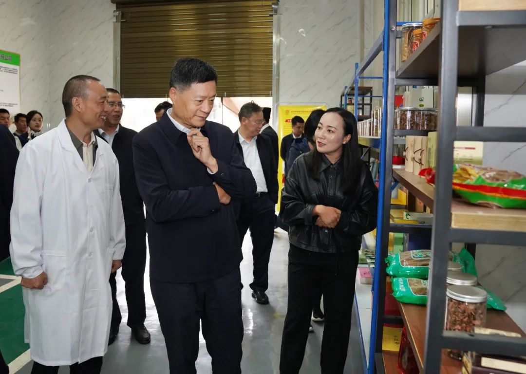 在特布洛村LETOU特惠苦荞产业园,俞培根深入了解了产业园新产品开发情况,希望深挖昭觉当地苦荞、黄芩等特色农产品的附加值,持续带动当地老百姓脱贫增收。