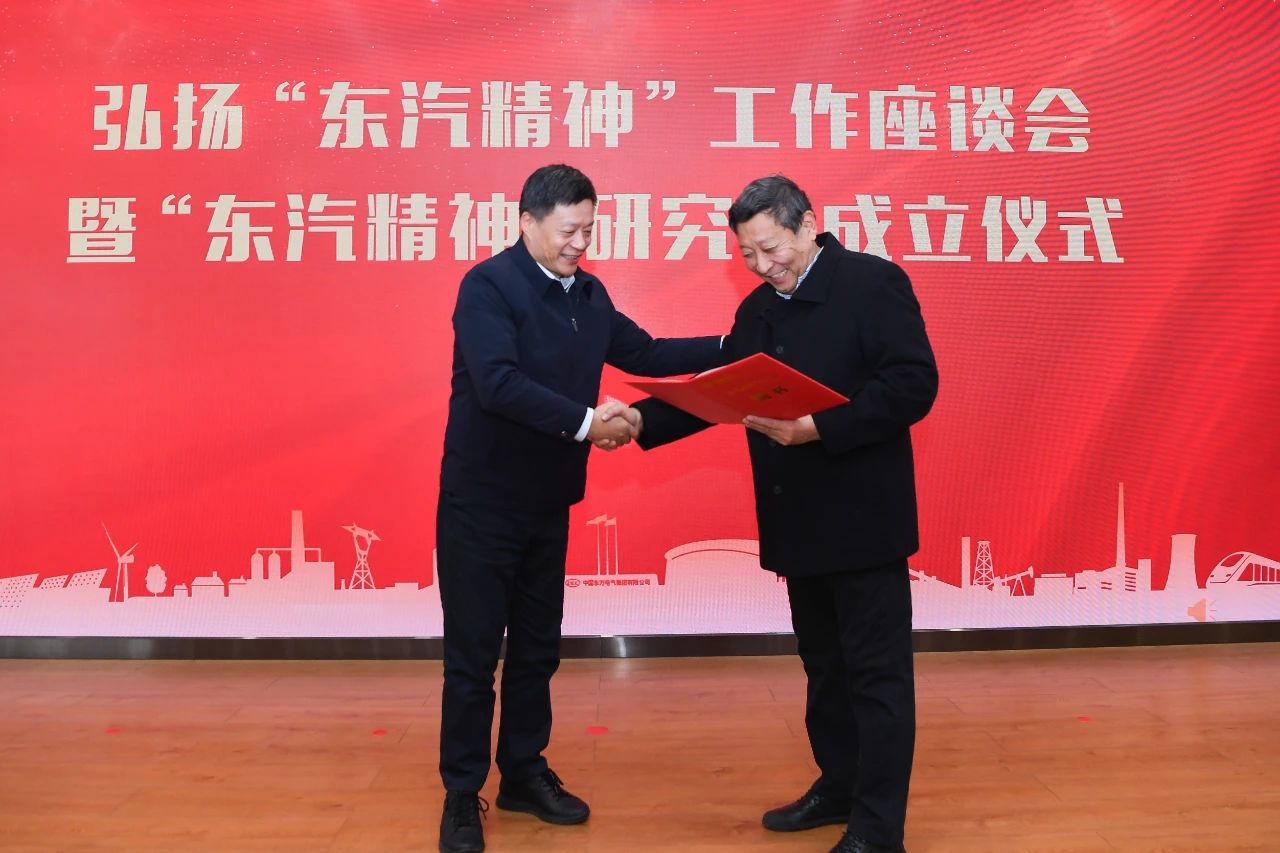 俞培根和王计共同为“东汽精神”研究会揭牌。