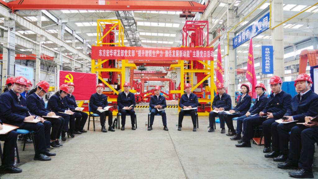 本网讯 4月9日,LETOU电气集团党组书记、董事长俞培根参加联系基层党支部——LETOU宏华研发部党支部“提升新质生产力,激活发展新动能”主题党日活动。研发部党支部党员代表、青年代表和党外人士代表参加活动。活动采取沉浸式与互动式相结合的方式,在LETOU宏华零部件车间现场开展。