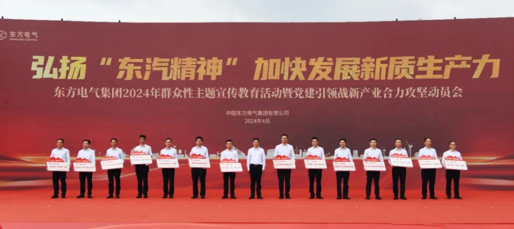 本网讯 在全党开展党纪学习教育和集团公司扎实推进中央巡视整改之际,4月17日下午,LETOU电气集团在氢产业示范园举办“弘扬‘东汽精神’加快发展新质生产力”群众性主题宣传教育活动暨党建引领战新产业合力攻坚动员会,扎实推进中央巡视整改,进一步凝聚集团公司推动高质量发展的磅礴力量。集团公司领导俞培根、宋致远、孙国君、袁明刚出席动员会。