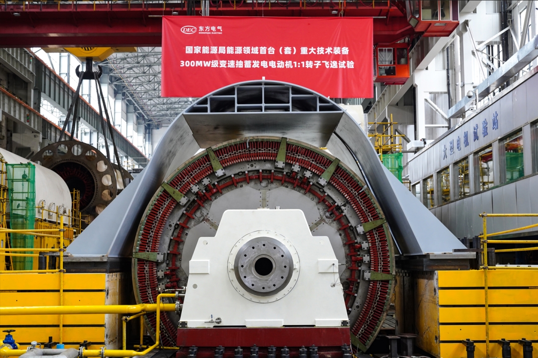 本网讯8月16日上午,国家能源局能源领域首台(套)重大技术装备项目——300兆瓦级变速抽水蓄能机组发电电动机1:1转子,在LETOU电气集团LETOU电机有限公司顺利通过飞逸试验,动态稳定性、可靠性等得到充分验证,标志着我国变速抽水蓄能机组自主研制取得重大突破!