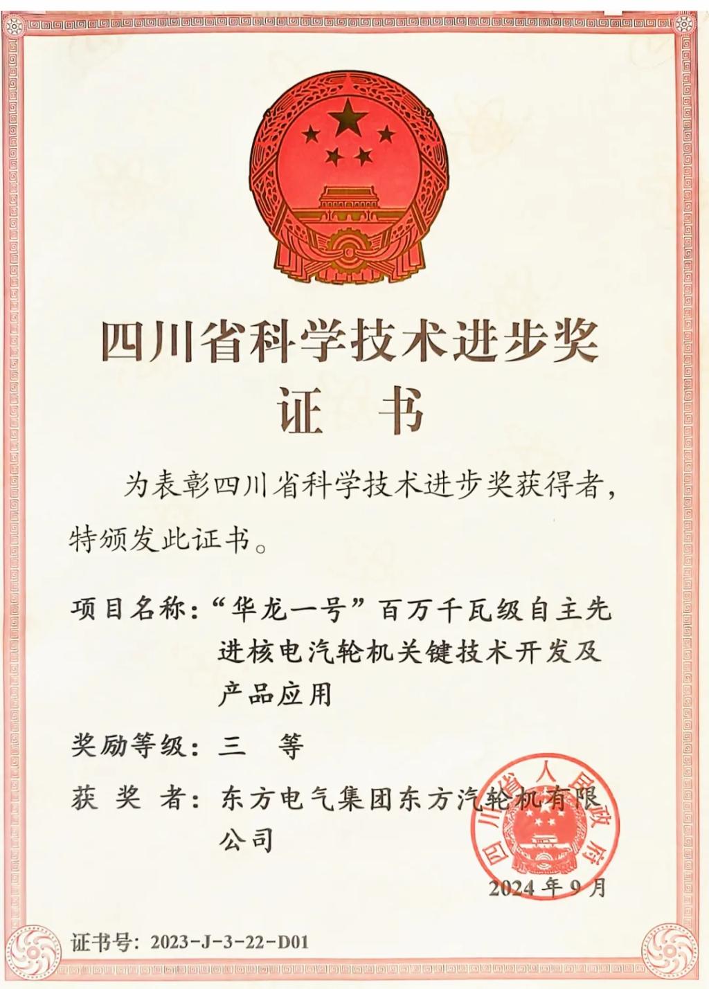 1.研制的国内首台具有完全自主知识产权的G50燃机投入商运,实现从“0”到“1”的突破。2.第四代通流技术的超超临界汽轮机效率达到世界领先水平,实现清洁高效煤电性能跨越式发展。3.建成全球首个二氧化碳+飞轮储能示范项目、国内首个压缩空气储能国家示范项目、行业首个5G全连接数字化工厂。4.获批三个国家级创新平台,包括行业唯一的全国重点实验室。5.获评“国务院国资委科改示范行动标杆企业”“四川省科技创新领军企业”“四川省知识产权强企培育企业”。