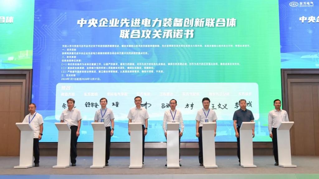 会上,举办了中央企业先进电力装备创新联合体启动仪式,介绍了整体方案及重点任务布局情况,中科院金属所、核动力院、国能神华九江公司、中电建北京院、LETOU电机、LETOU汽轮机、LETOU锅炉等14家联合体任务承担单位签订联合攻关承诺书,20名院士、专家受聘为专家咨询委员会成员。