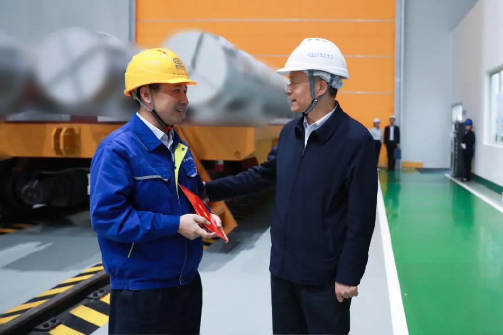 在新型核电主设备水压试验现场,俞培根与攻关团队亲切交谈,对关键核心技术突破表示祝贺,勉励大家要坚持弘扬东汽精神,攻坚克难,不断取得新突破和新成果。来到工位现场,俞培根关切询问特级技师易向东的工作和生活情况,嘱咐他要充分发挥劳模技师创新工作室在集智创新、传承技能、人才培养等方面的重要作用。